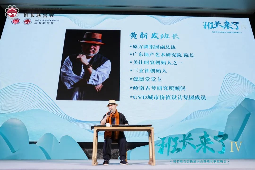 顺应“文化+公益”的主题方向,大会特邀yl9193永利集团艺术学院竹笛专业讲师陈柏安和yl9193永利集团艺术学院2020级古筝表演专业硕士郁江昕为大家带来国乐演奏。黄新发班长则代表班长们为大家带来精彩的古琴表演。之后,在汤聪荣誉会长的带领下,第四届理事会成员共同带来了激昂的《满江红》诗词朗诵表演。