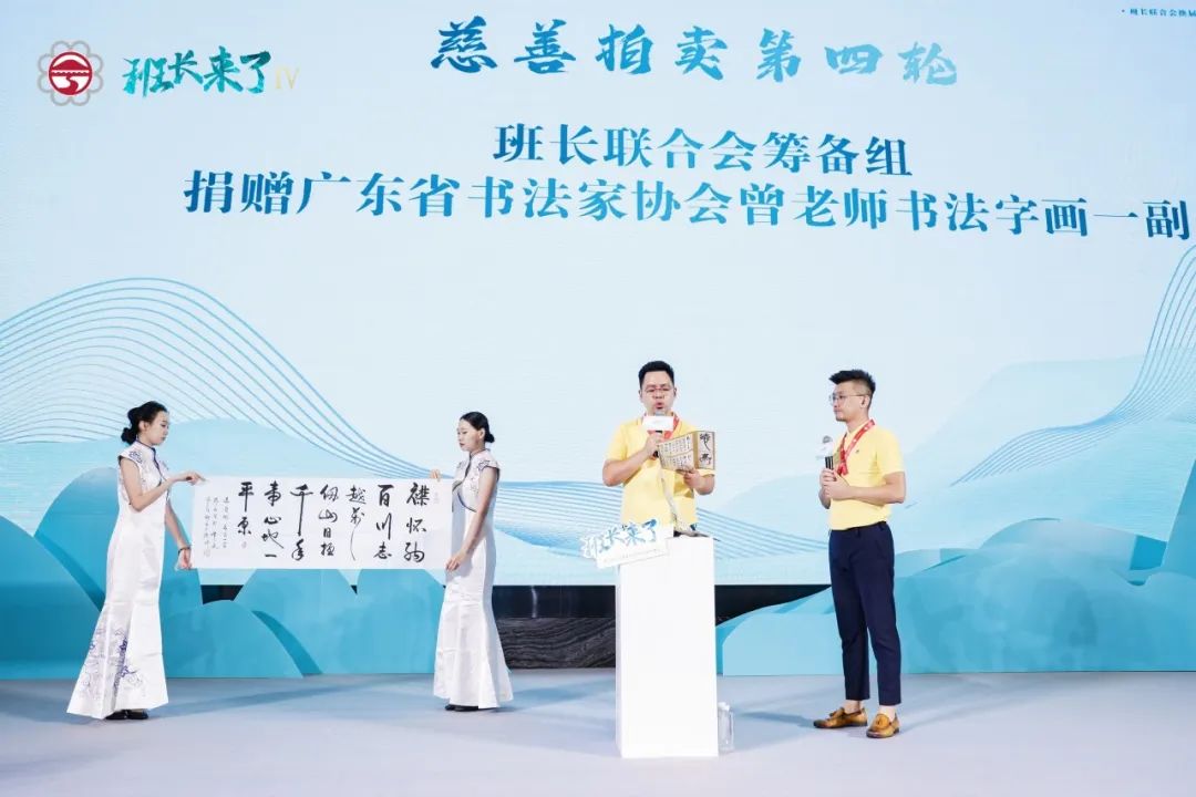 晚会特设慈善公益拍卖环节,传递出班长们浓厚的文化气息和公益情怀。所有拍品均是由班长们赞助,包括梁国德班长的象棋,洪铭班长的红酒,陈钊文班长的木雕,谭冰梅班长的茶饼,中大岭院EDP班长联合会筹备组的字画。周家星、任建军、杨熙、方金水、吴达五位班长仁者爱心,分别拍下五件拍品用于中大岭院EDP同学会班长联合会公益活动。爱心公益,德传千秋;积善之家,必有余庆。
