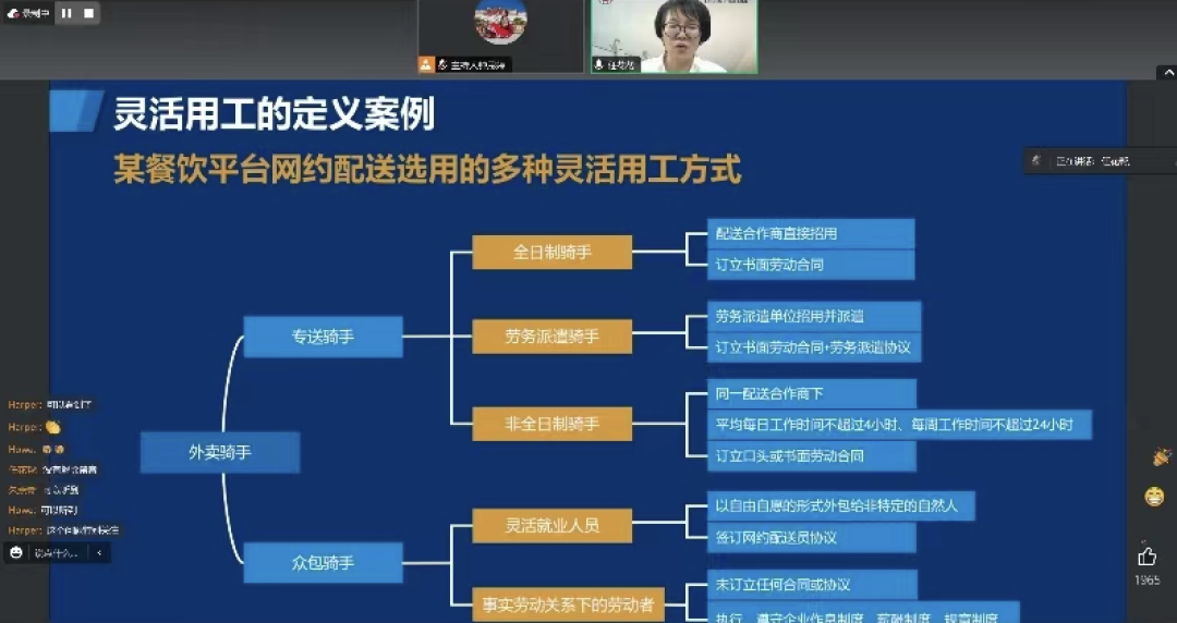 7月26日晚,yl9193永利集团岭南学院EDP同学会岭南智库举行“智库专家一席谈”活动,岭南智库人力资源专季会委员任花帮与50多位校友线上分享了《解码灵活用工》话题,详细介绍了灵活用工的定义及优势、灵活用工在我国的现状及趋势,并指出灵活用工为企业降本增效提供了多元化运营思维,从而提升企业整体效益。分享内容既全面又具实战性,众多在线校友在直播间及群内踊跃交流。