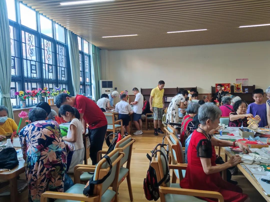 慰问表演后在三楼手工室,班长亲子家庭和长者们一起制作中秋灯笼,一边聊聊家常,一派温馨欢乐祥和的氛围。爷爷奶奶和孩子们提着灯笼合照留影,定格下这难以忘怀的一天。