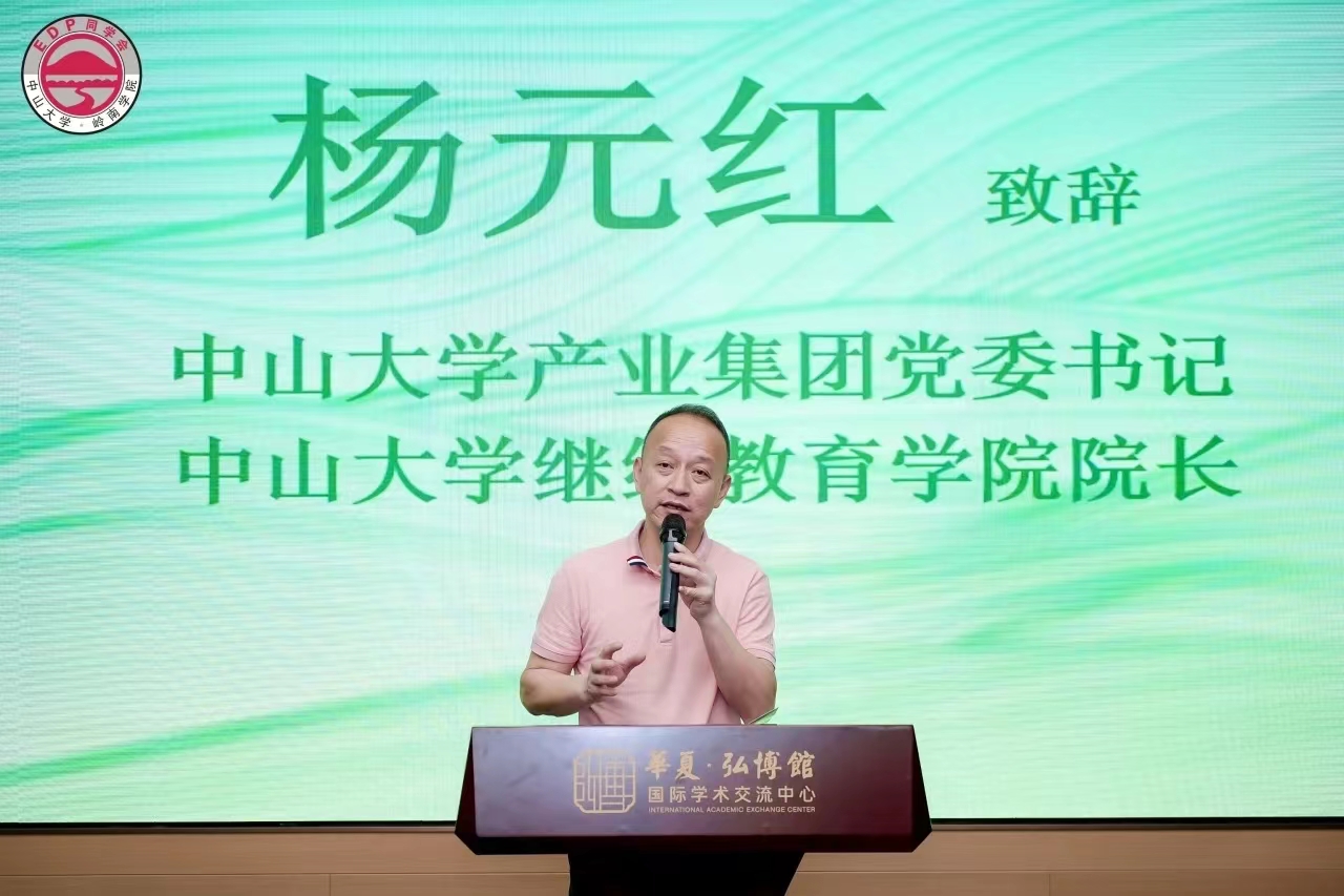 yl9193永利集团继续教育学院院长、产业集团党委书记杨元红致辞,深情回忆了与岭院EDP同学会共度的美好时光,表示同学会有一个很大的特点,就是不仅有诗和远方,还包含深情、博学、笃行而致远。希望岭院EDP同学会在开启15周年新征程的同时,传承中大精神,“为社会福,为邦家光”,协同其他兄弟校友组织一起,共同为中大百年校庆添砖加瓦。