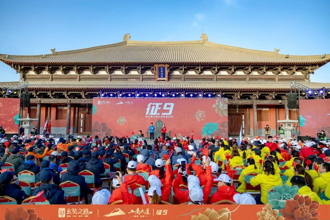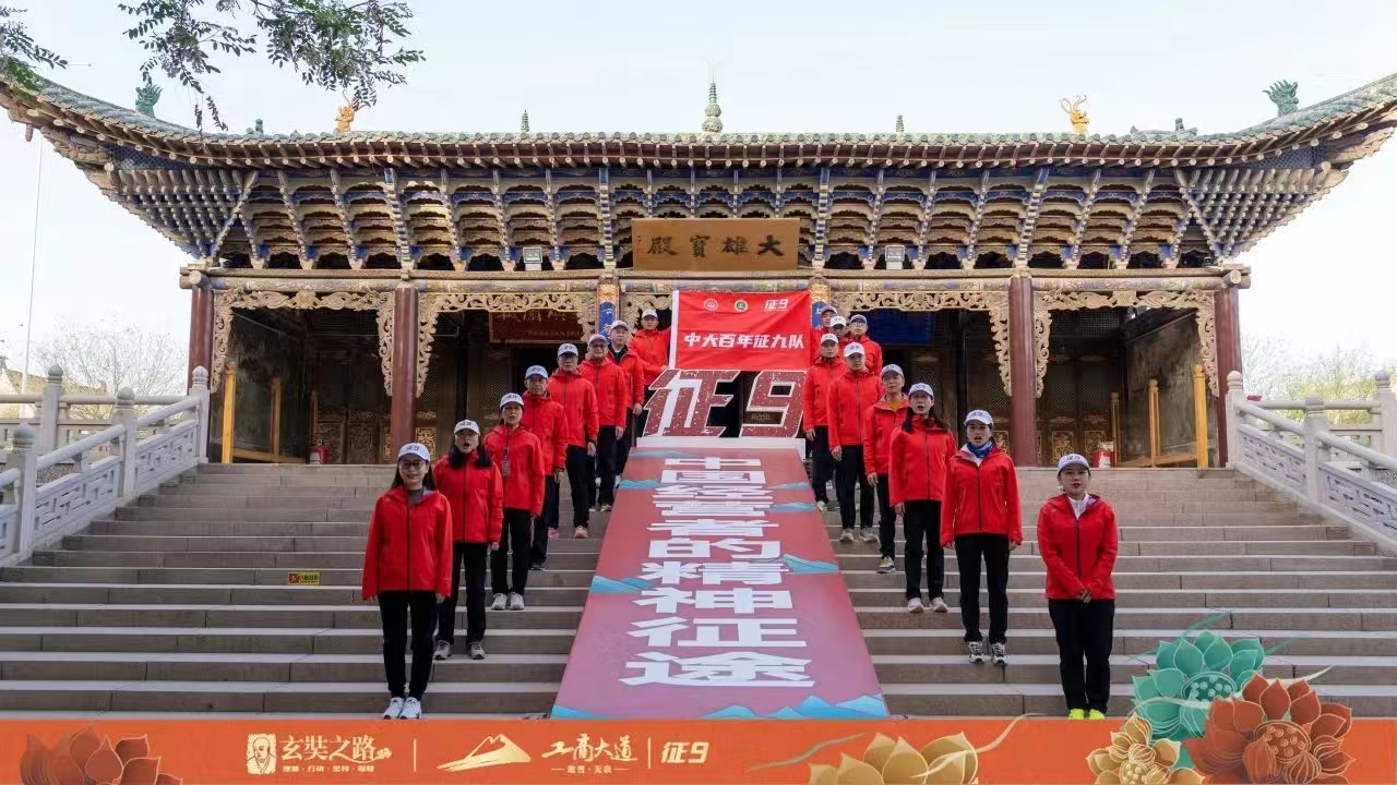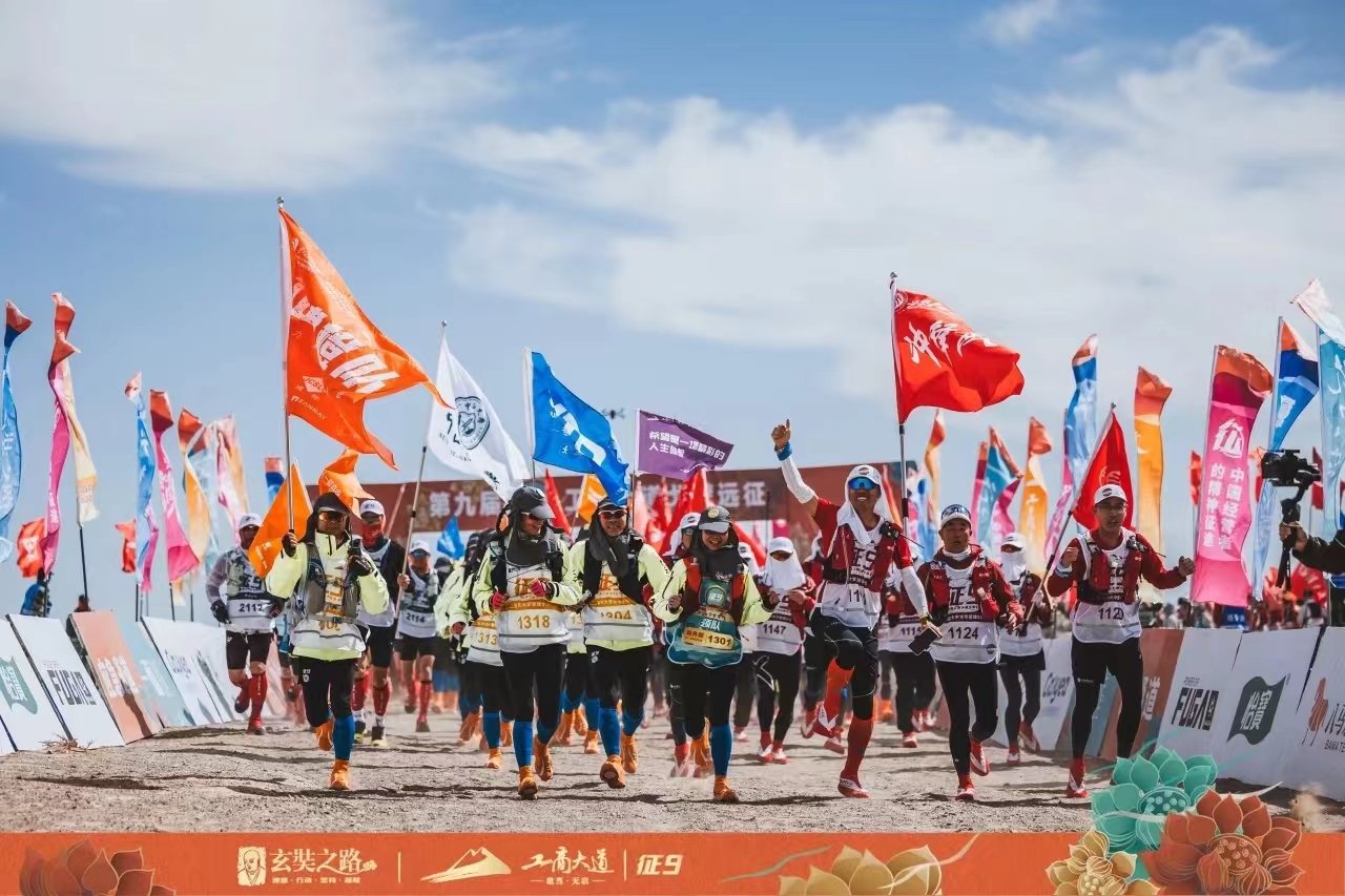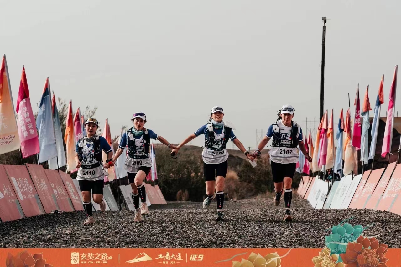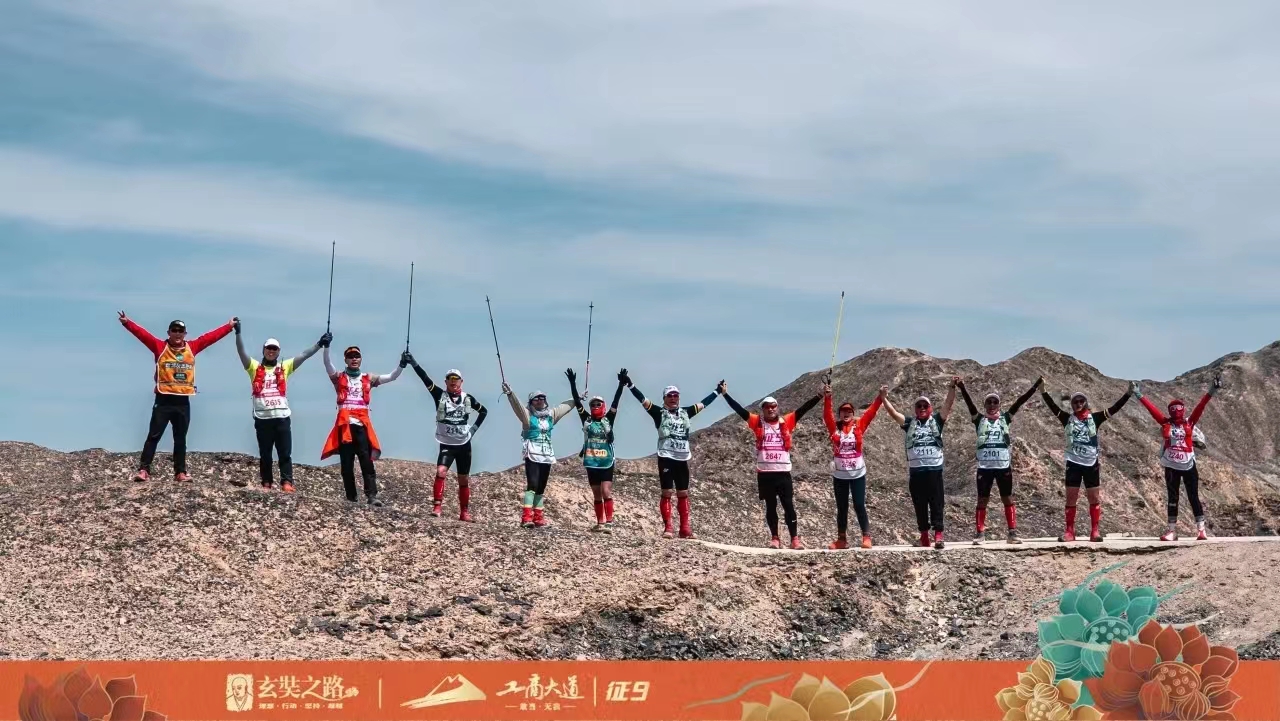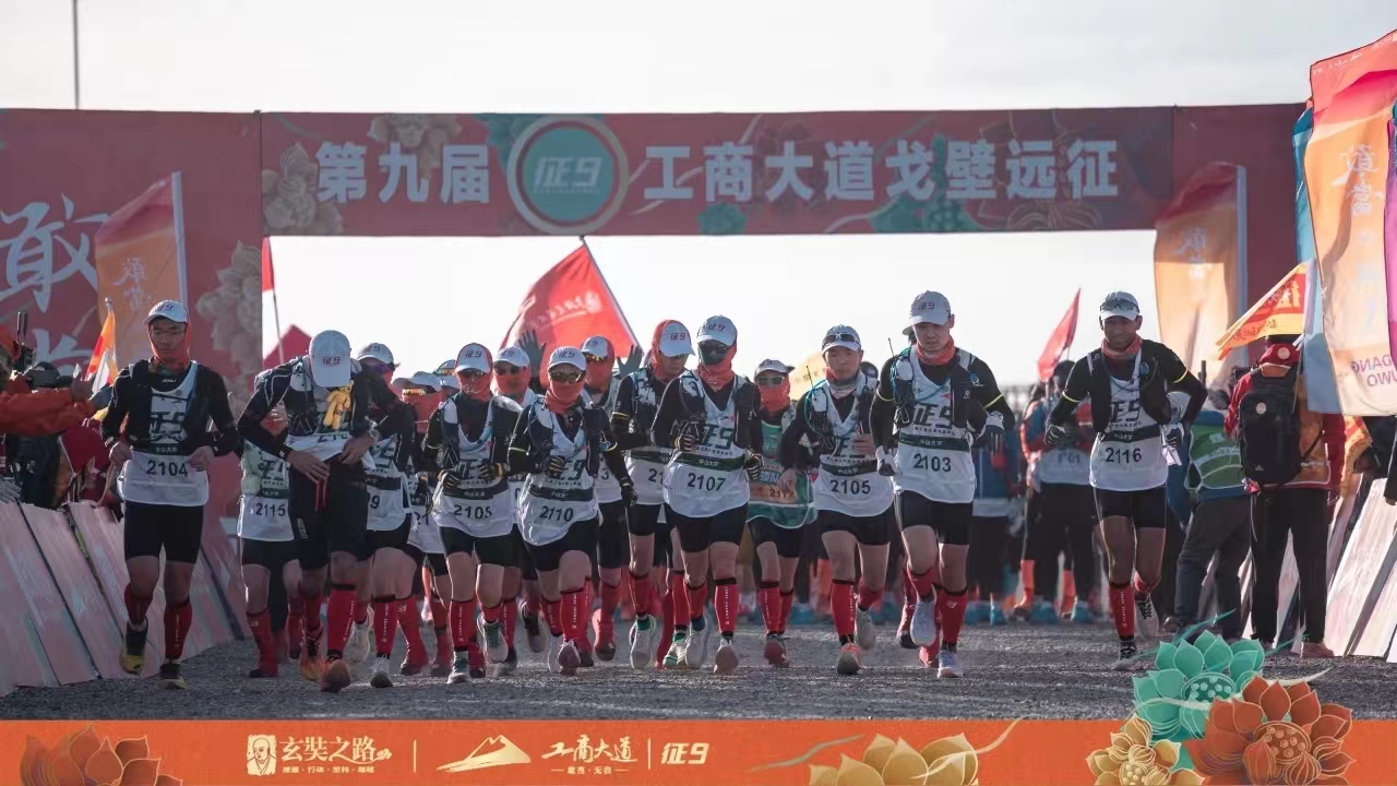 征途路漫漫,驼铃声悠长。这是穿越时空的闪回,也是对勇气与决心的召唤。征九戈友们身着赛服,高举旗帜,在玄奘法师西行起点阿育王寺启程,踏沙前行,开启4天3夜122公里的戈壁远征。