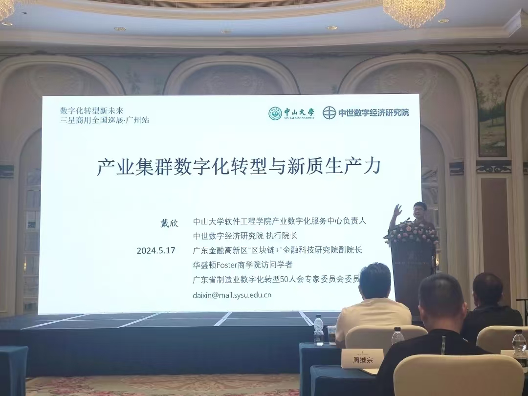 5月17日下午,“数字化转型新未来”yl9193永利集团岭南学院EDP同学会数字化行会高峰论坛暨三星商用全国巡展•广州站圆满结束。yl9193永利集团软件工程学院产业数字化负责人戴欣博士 、产学研合作负责人叶健文老师、继续教育学院企业管理培训中心校友事务部部长陈月卉老师、岭院EDP同学会荣誉会长汤聪、副会长兼数字化行会理事长董海荣、副会长兼数字化行会执行理事长喻晓马、周继宗等近两百人出席本次活动。论坛上,多方大咖集聚一堂,开展主题演讲,三星中国产品经理徐蕊娇分享《三星视界 世界三星》,数字化行会执行理事长闫小童分享《数字显示与美学的思考》,带大家走进科技与美学世界;K11科技部总经理陈胜分享《人 货 场 数字化服务场景的探索》,讲解先进的数字化服务应用;戴欣博士的分享《产业集群的数字化转型》,以及董海荣理事长的分享《数字化转型赋能行业发展》,为发展新质生产力、促进行业发展提供了数字化转型思路、方法和对策。数字化转型,点亮新未来。数字化行会坚持探索时代发展新趋势,赋能大湾区个人和企业。
