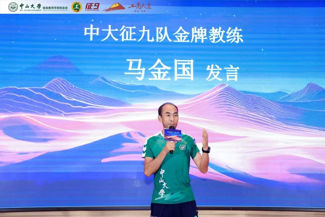 中大征九队金牌教练马金国发言,分享征九赛事前后的故事和感受,称赞了征九全体队员的刻苦训练、毅力顽强和团结向上,表示将一如既往地投入到征十的带训中,助力征十团队再攀新高。