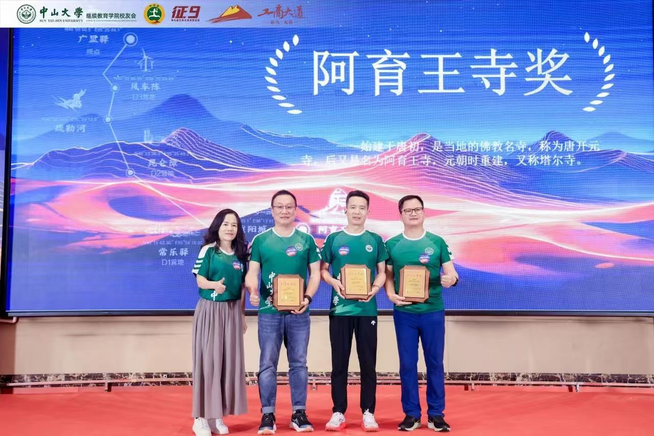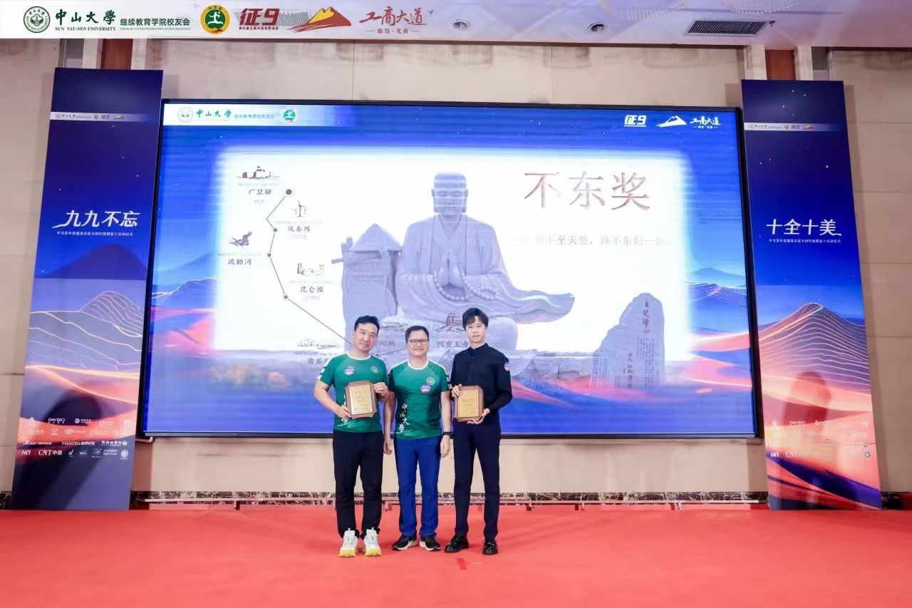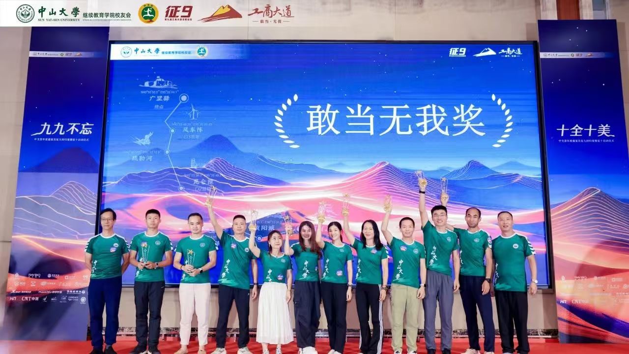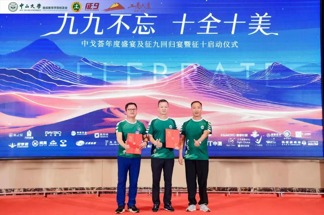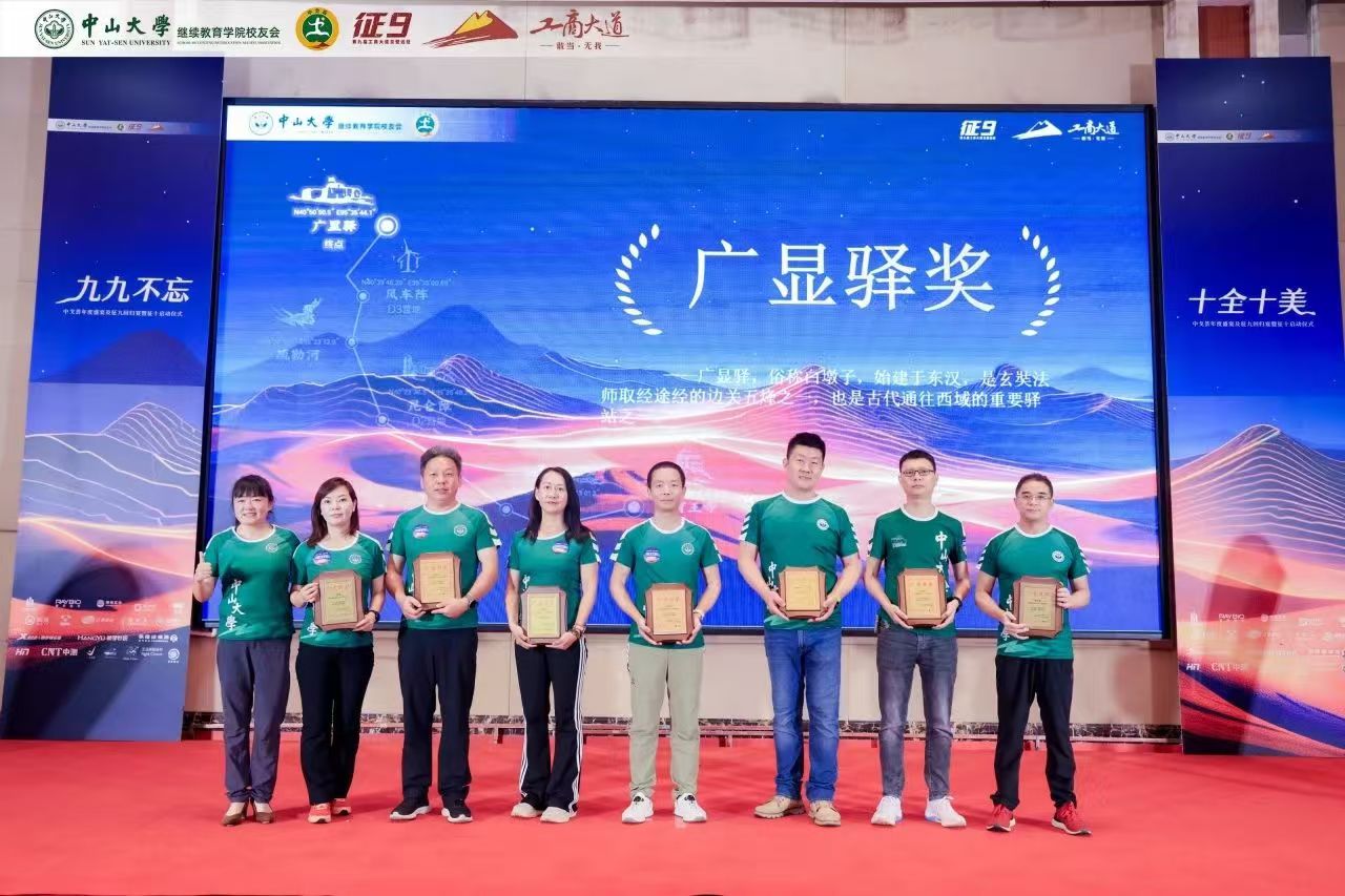 苍茫戈壁,荣光不绝。回归宴上隆重举行了颁奖仪式,以戈壁远征赛事特色象征命名奖项,中大继教院领导老师、校友会代表、兄弟院校嘉宾分别向中大征九全体队员以及支持赞助征九的热心校友、赞助商颁发荣誉奖牌,表达赞赏与感谢。感恩致敬大家一路的支持和付出,汇聚成了这璀璨的荣光!