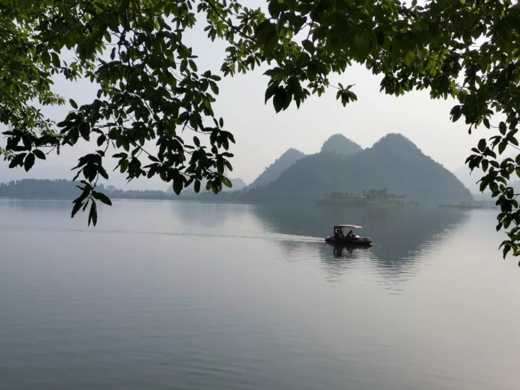 迎着秀媚的青山,伴着微漾的绿湖
