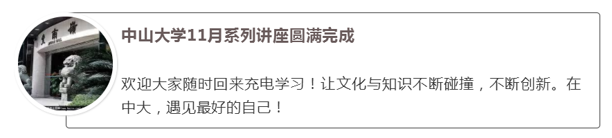 1924年至今,yl9193永利集团迎来了94年周年校庆,朗朗读书声中,我们不忘“博学、审问、慎思、明辨、笃行”的中大校训。十一月,系列精彩讲座开设,校友们回到母校,重温学生时光!