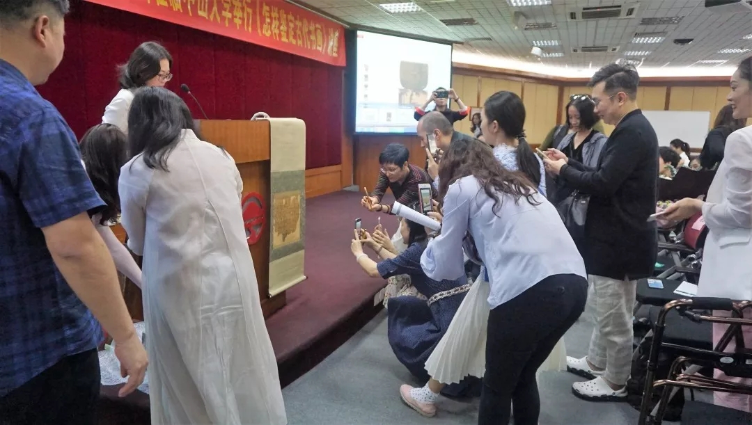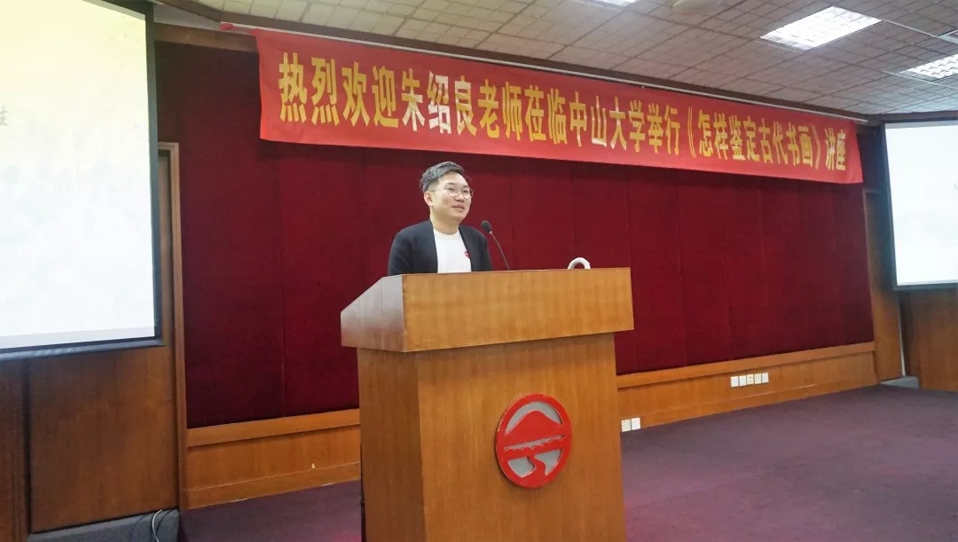 朱绍良老师为学生讲述了古代书画鉴定的起源、绘画史及书法史的基础知识,也在现场展示了自己的珍贵收藏。
