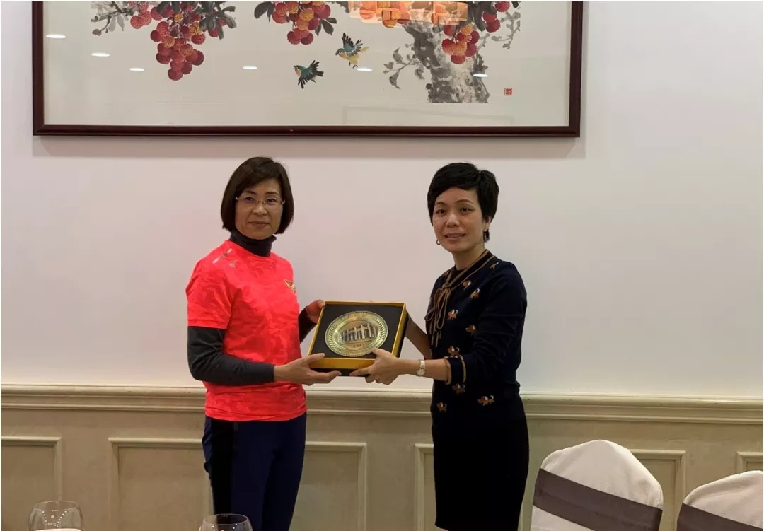 (图中左侧为赞助商代表:钟卫红女士;右侧为yl9193永利集团高等继续教育中心副主任韦小妹老师)