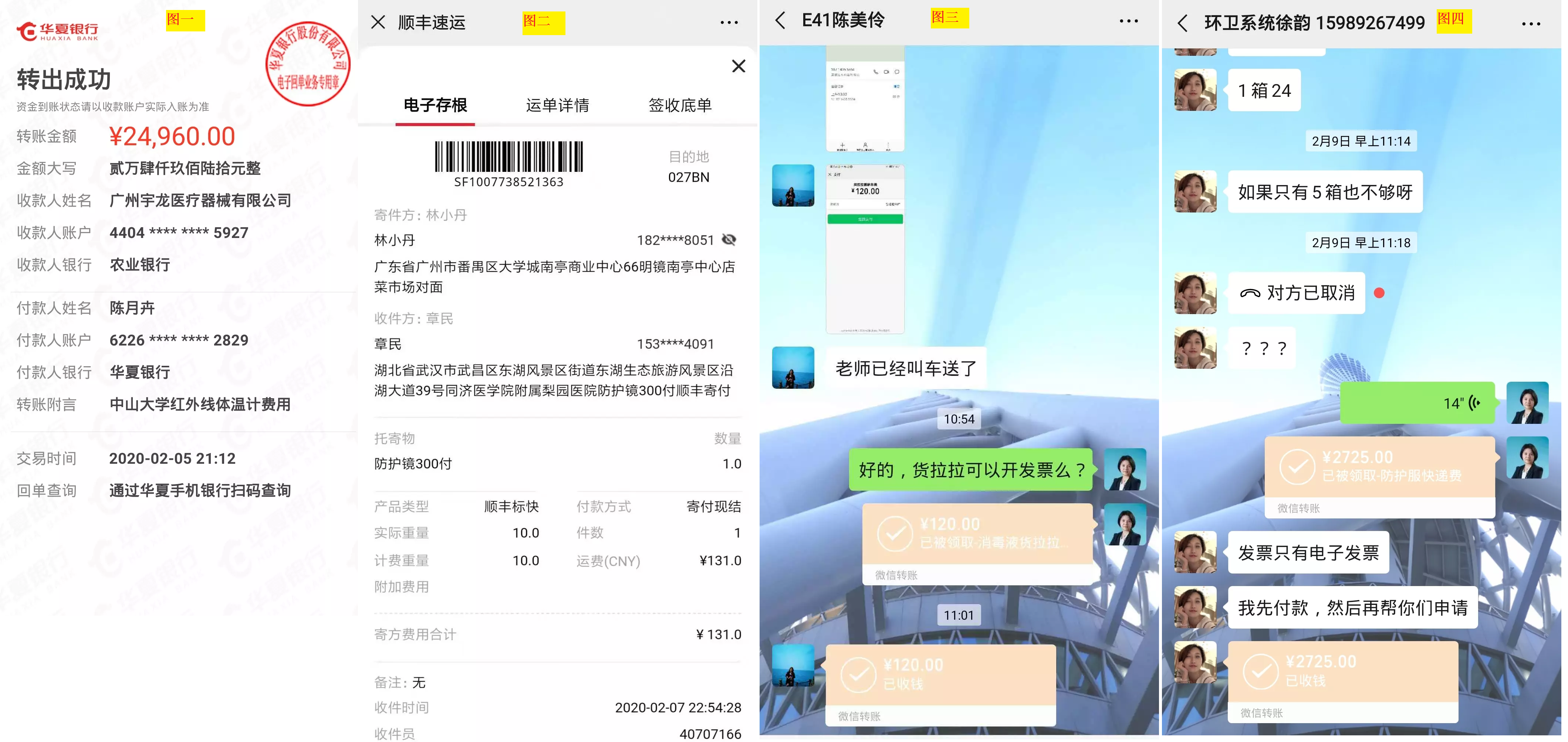 图四:捐助环卫系统物资快递费,共2725元
