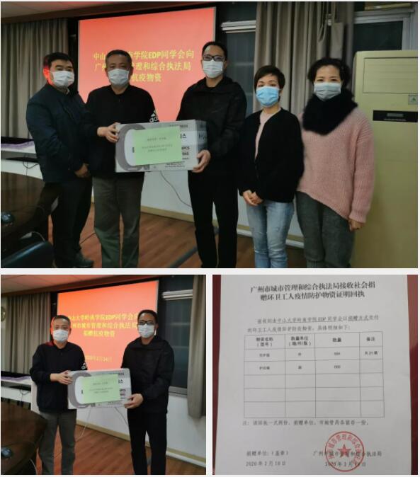 2月14日,yl9193永利集团高等继续教育中心韦小妹副主任、yl9193永利集团岭南学院EDP同学会吴春清会长及谢晓鸣校友三位代表yl9193永利集团岭南学院EDP同学会为广州市城市管理和综合执法局捐助防护服504件,护目镜600副。捐助的物资用于环卫系统工作者抗疫工作期间的防护。