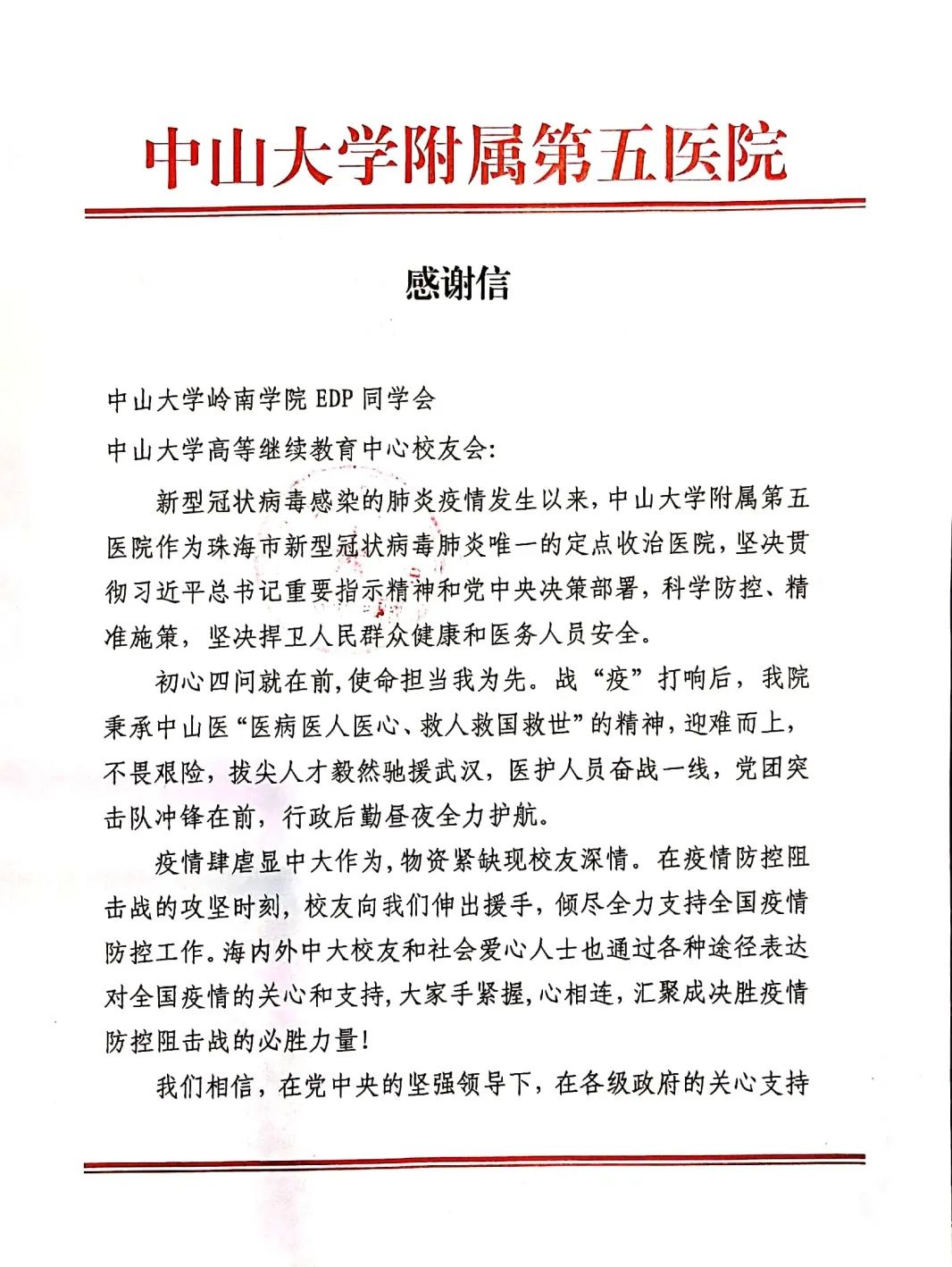 yl9193永利集团岭南学院EDP同学会感谢信