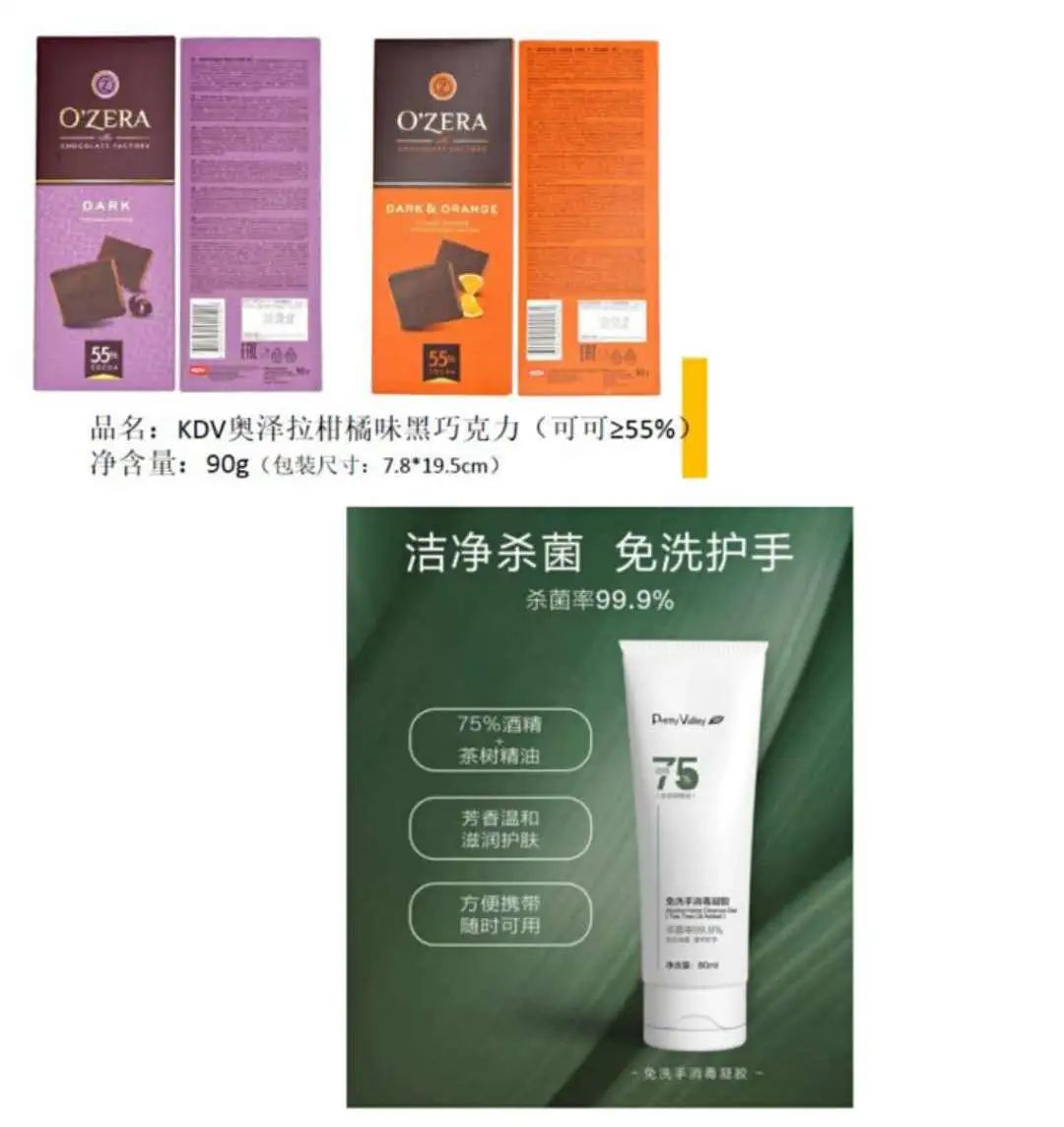 节日慰问品:免洗手消毒凝胶、巧克力等等