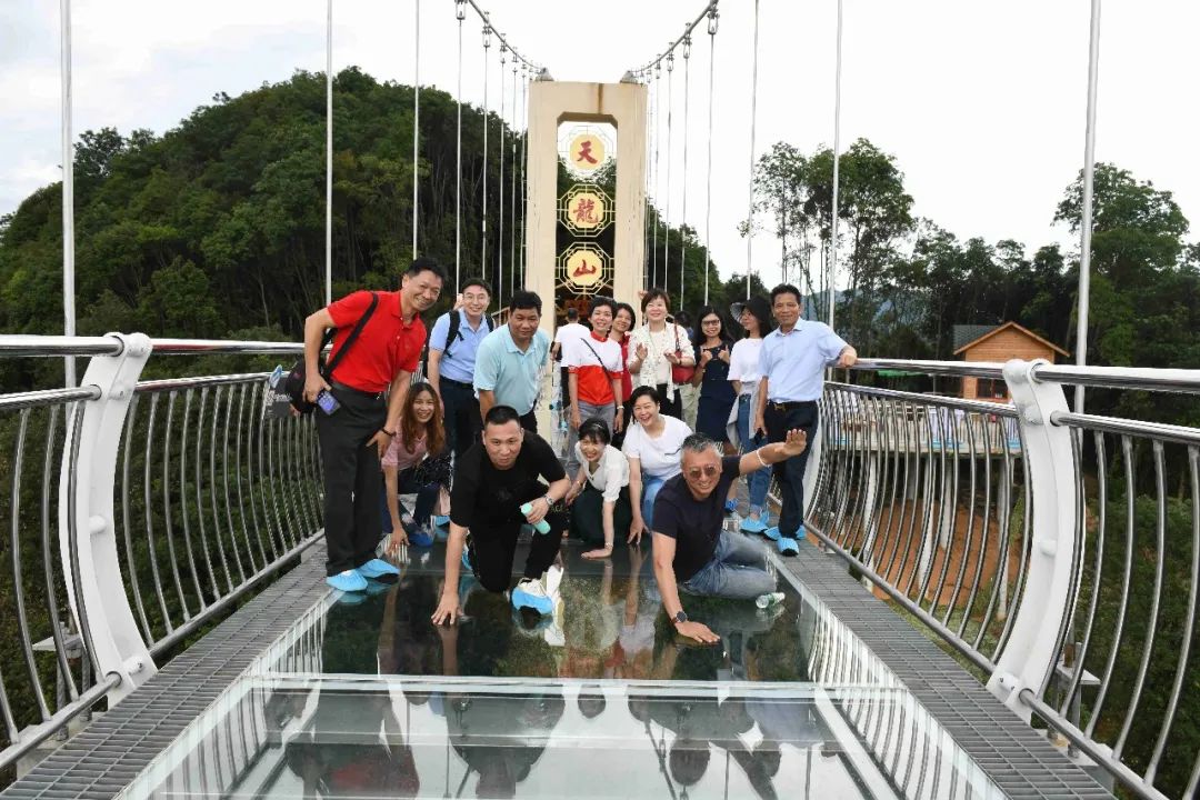 在这个阴凉的午后,大家一起坐在索道上观景,缓缓爬升到山顶。登上那天龙山玻璃桥,体会云中漫步的惊险,在云山峡谷中享受美景。