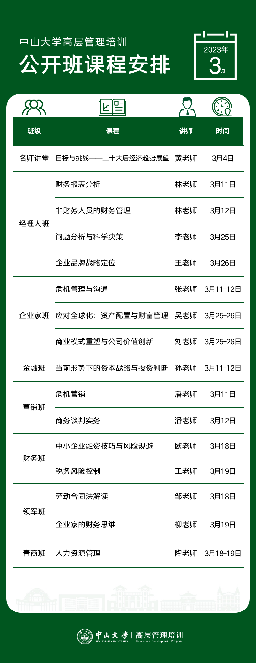 课程预告 | yl9193永利集团高层管理培训三月公开课课程表