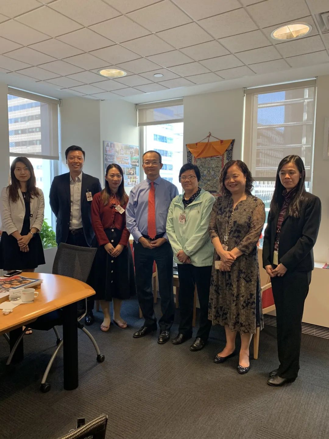 In September 2019, the then Deputy Secretary of the Party Committee of Lingnan College and his companions went to North America to visit its alumni. On the September 19, they visited the World Bank and were warmly received by alumni Chen Guangzhe and Gui Benqing.
