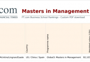 The Global 3 Program that is collaboratively established by Lingnan (University) College, McIntire School of Commerce at the University of Virginia (USA), and ESADE Business School (Spain) has achieved No. 12 and No.