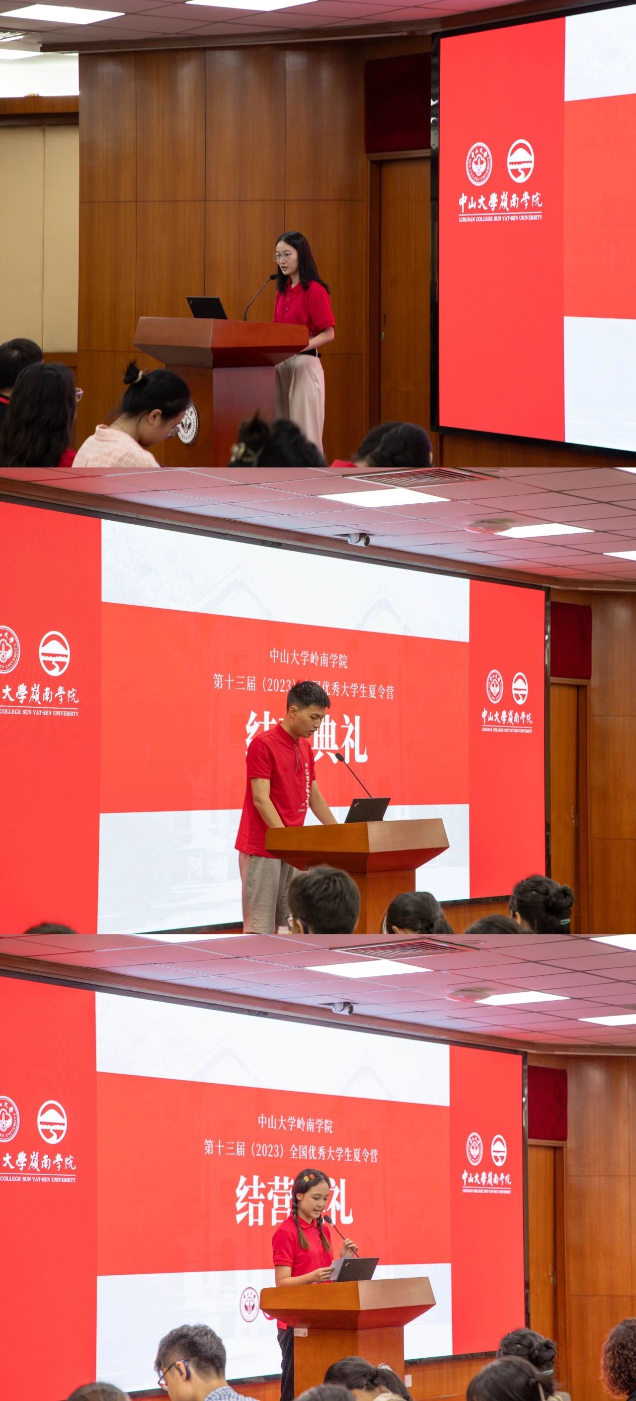 结营典礼于7月15日上午在岭南堂三楼举行,岭南学院副院长刘彦初教授做总结发言。他表示营员们能从近两千名申请者中脱颖而出,这是一种优秀,也是一种缘分。通过跟同学们4天的亲密接触和近距离的面试交流,感受到今年夏令营的同学们都非常优秀,感谢同学们选择岭南,希望明年9月与大家再次相见。