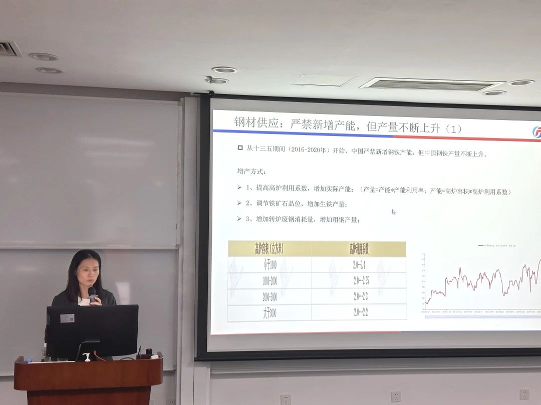 周老师介绍了期货行业概况、期货是什么、期货的功能和钢材研究框架四个方面的内容。周老师从中国期货市场三个阶段的发展历史出发,向同学们系统介绍了国内期货交易所、期货期权品种以及国内期货公司的基本情况。周老师接着通过比较期货和其他金融投资品种,阐述期货的功能以及交易所的风险控制制度。最后,周老师以钢材为例,引用多种模型向同学们讲解了研究的框架。