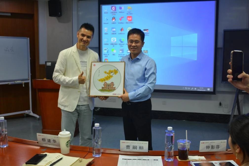 院长助理柳建华教授代表岭南专硕教育中心赠送礼物给炳胜曹嗣全董事