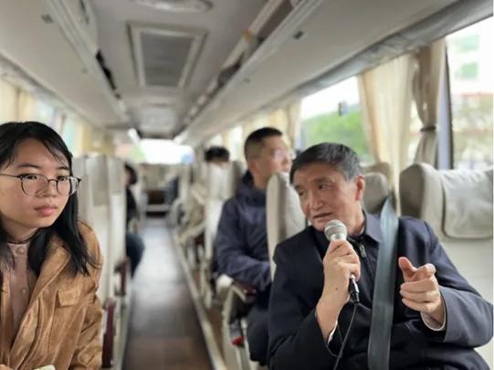 活动当天上午八点,师生们准时在中大北门集合,乘坐大巴前往普乐美。在约两小时的车程中,张教授精心主持了一场生动的“巴士课堂”,邀请同学们逐一介绍各自所从事的行业,并针对当前各行业所面临的发展挑战展开深入交流和探讨。