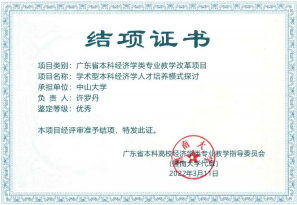 喜讯︱许罗丹教授主持的《学术型本科经济学人才培养模式探讨》省级教改项目结题获颁发优秀证书