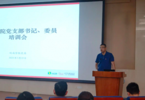 3月22日中午,岭南学院党委在MBA大楼402开展了3月师生党支部书记、委员培训会。学院党委书记黄毅同志、副书记樊峰会同志、专职组织员林小敏老师等出席培训,共有近40名师生党支部书记、委员参加。本次培训由党务秘书胡中意主持。