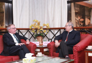 2019年12月5日上午,欧洲联盟驻中国代表团团长郁白大使来访我校,我校罗俊校长在岭南学院岭南堂会见了大使一行,国际合作与交流处卢宇彤处长、岭南学院陆军院长等陪同出席。本次访问分为会谈和讲座两部分。 发展共赢 共谱合作新篇