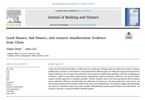岭南学院助理教授邓家品(第一作者兼通讯作者)与北京大学光华管理学院刘俏教授合作的论文Good finance, bad finance, and resource misallocation: Evidence from China发表在Journal of Banking and Finance的2024年第2期。