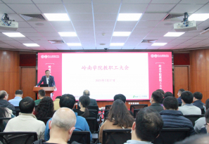 2月17日下午,岭南学院在岭南堂3楼陈荣捷讲学厅召开全院教职工大会,学院院长李善民,党委书记黄毅,党委副书记樊峰会,副院长鲁晓东、刘彦初、林建浩,院长助理柳建华、郭凯明及学院教职员工共120多人参加了本次会议。会议由学院党委书记黄毅主持。